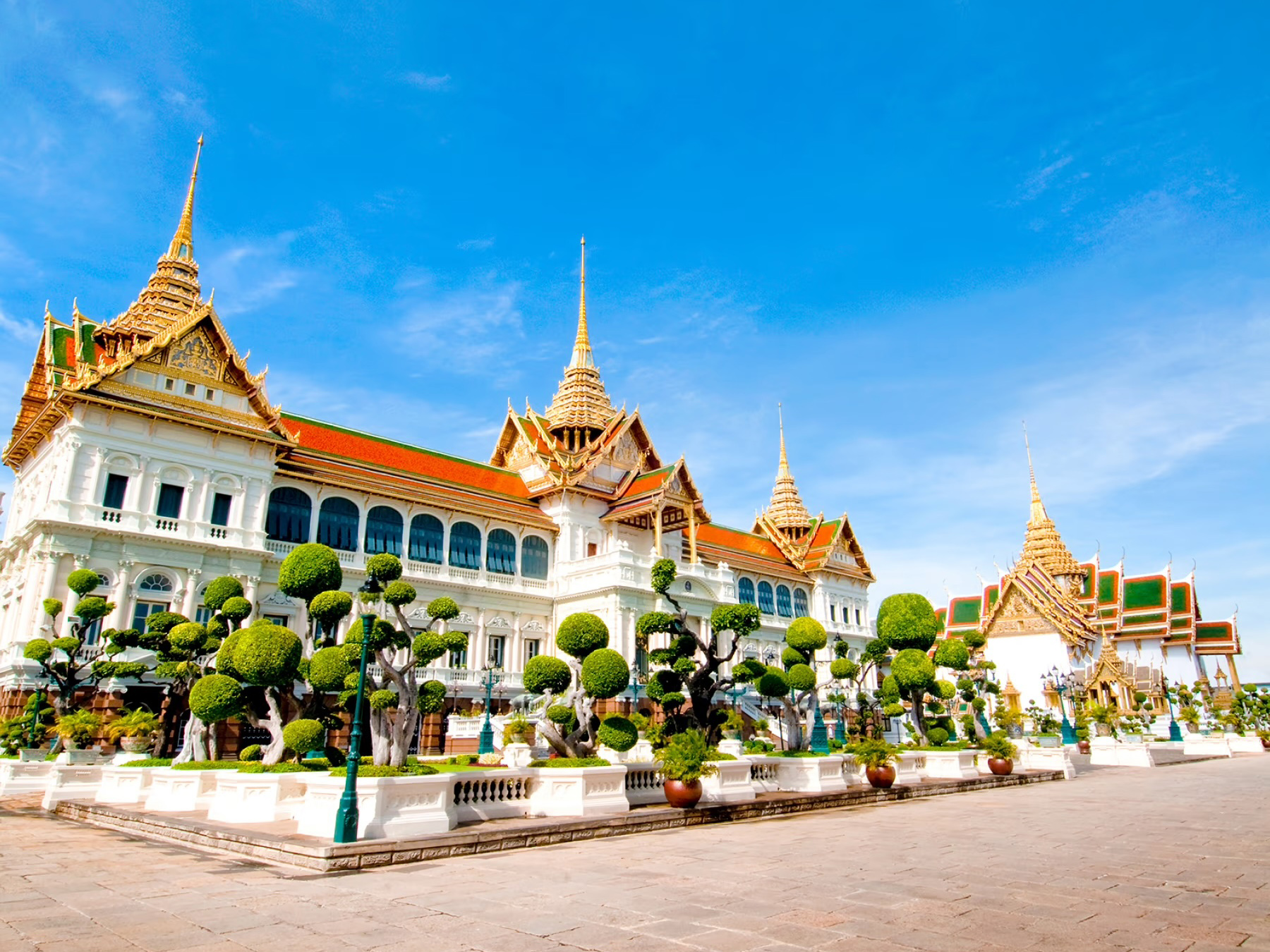 The Grand Palace in Bangkok, Thailand, is an architectural marvel and a symbol of the nation's rich history and culture. This opulent complex, originally constructed in 1782, served as the official residence of Thai royalty and is renowned for its intricate details and stunning design. Visitors are captivated by the emerald-green Wat Phra Kaew (Temple of the Emerald Buddha), its gleaming golden spires, and the elaborate murals depicting historical and mythological scenes. The Grand Palace's blend of traditional Thai architecture with European influences offers a breathtaking glimpse into Thailand's regal past, making it a must-visit destination for history and culture enthusiasts.